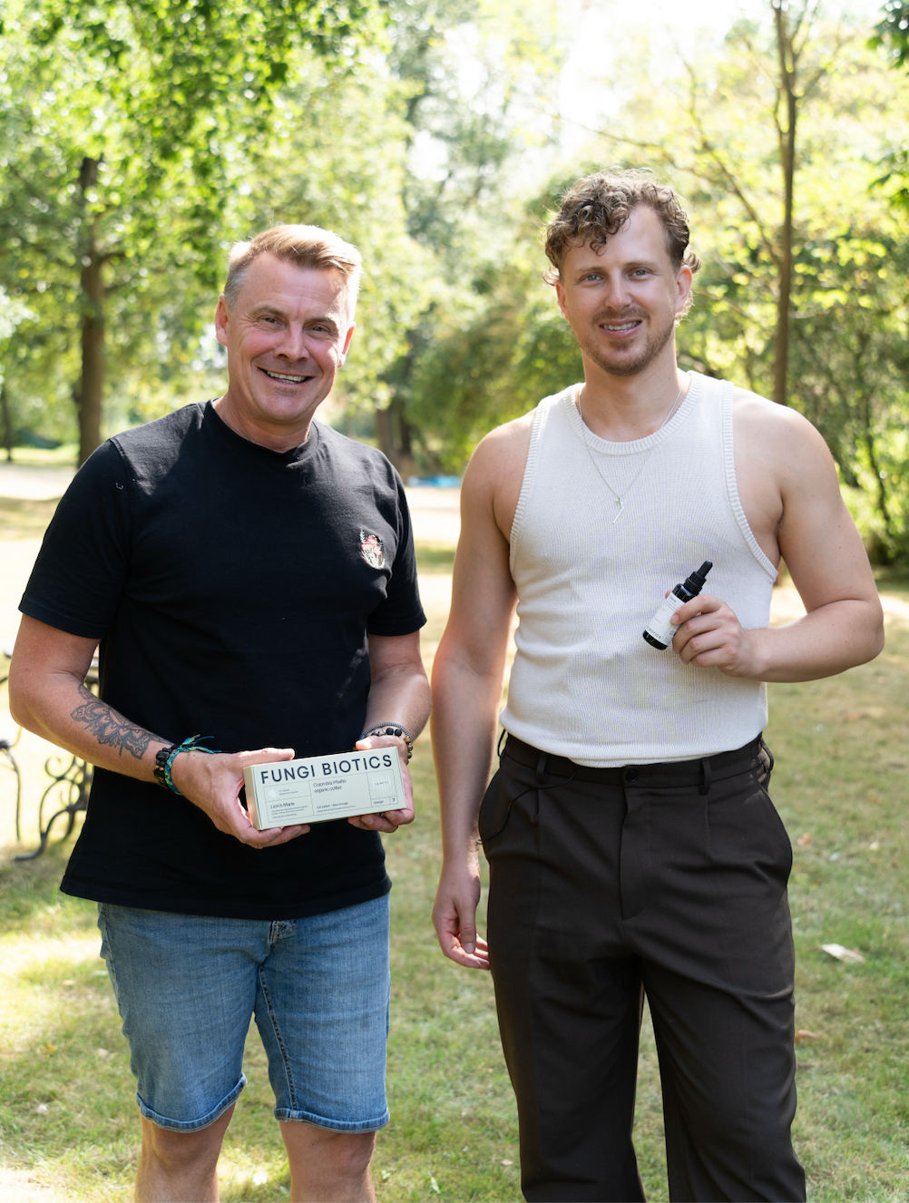 Hey, nice to meet you! We are the founders of Fungi Biotics, Aaron and Steve.